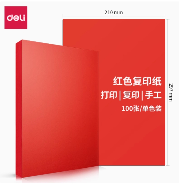 得力/deli 7788 復(fù)印紙 復(fù)印紙A4大紅色電腦打印紙辦公100張/包80G